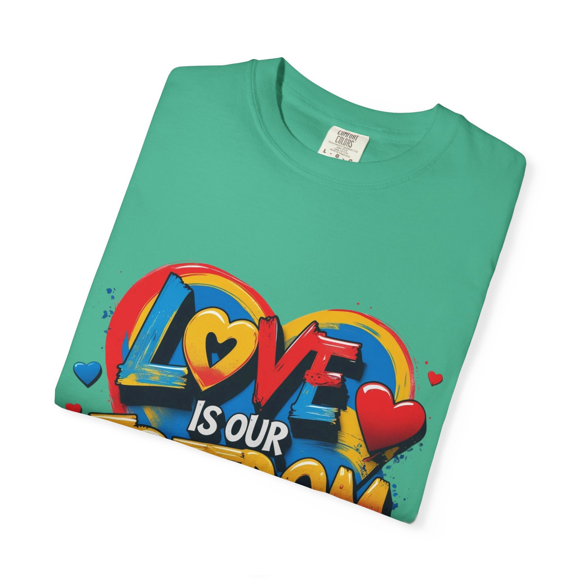 Colorful "Love Is Our Freedom" T-Shirts that exude positivity and unity. Perfect for those who believe in spreading love and acceptance. Ideal for casual outings, pride events, and as a gift for LGBTQ+ community members.