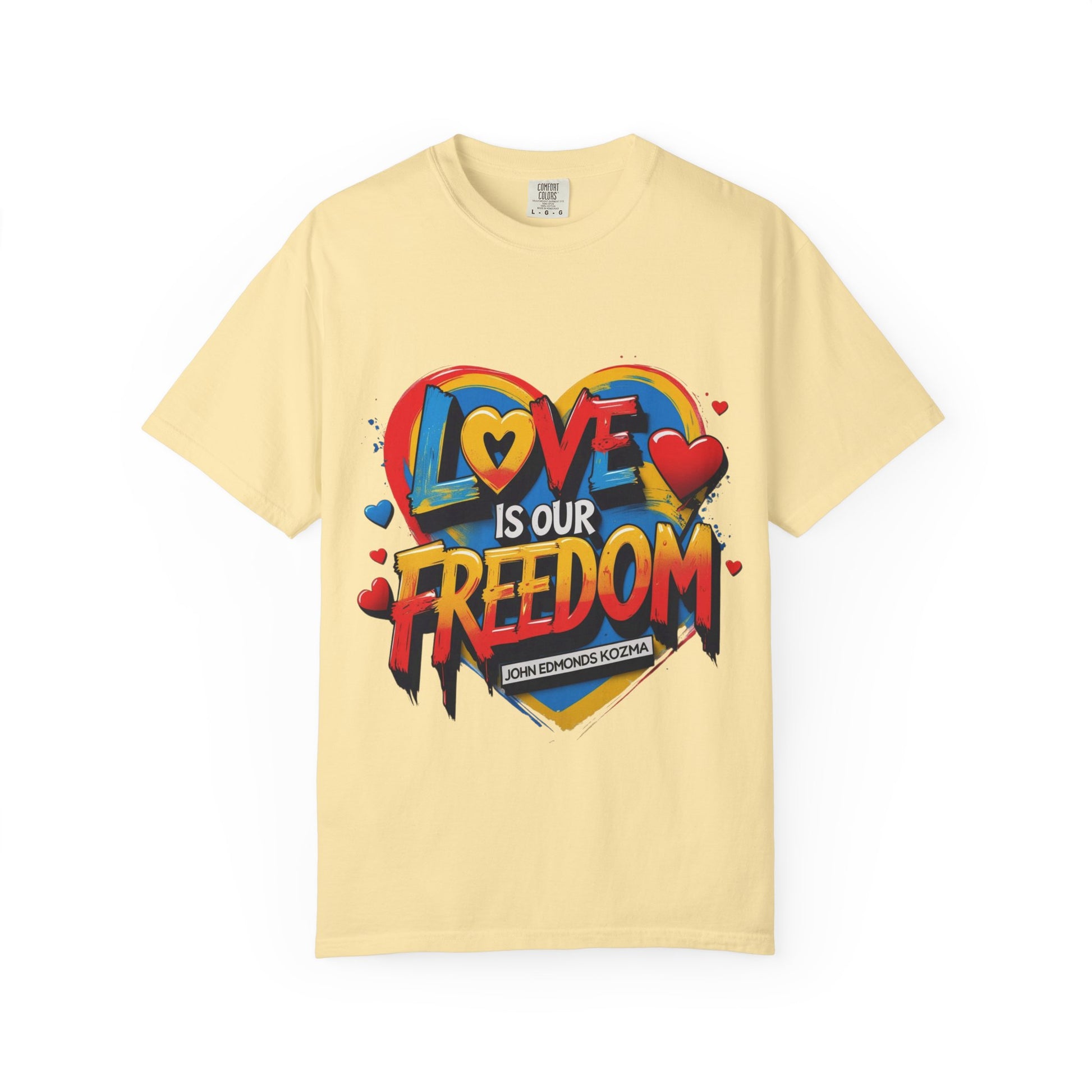 Colorful 'Love Is Our Freedom' T-Shirt by John Edmonds Kozma